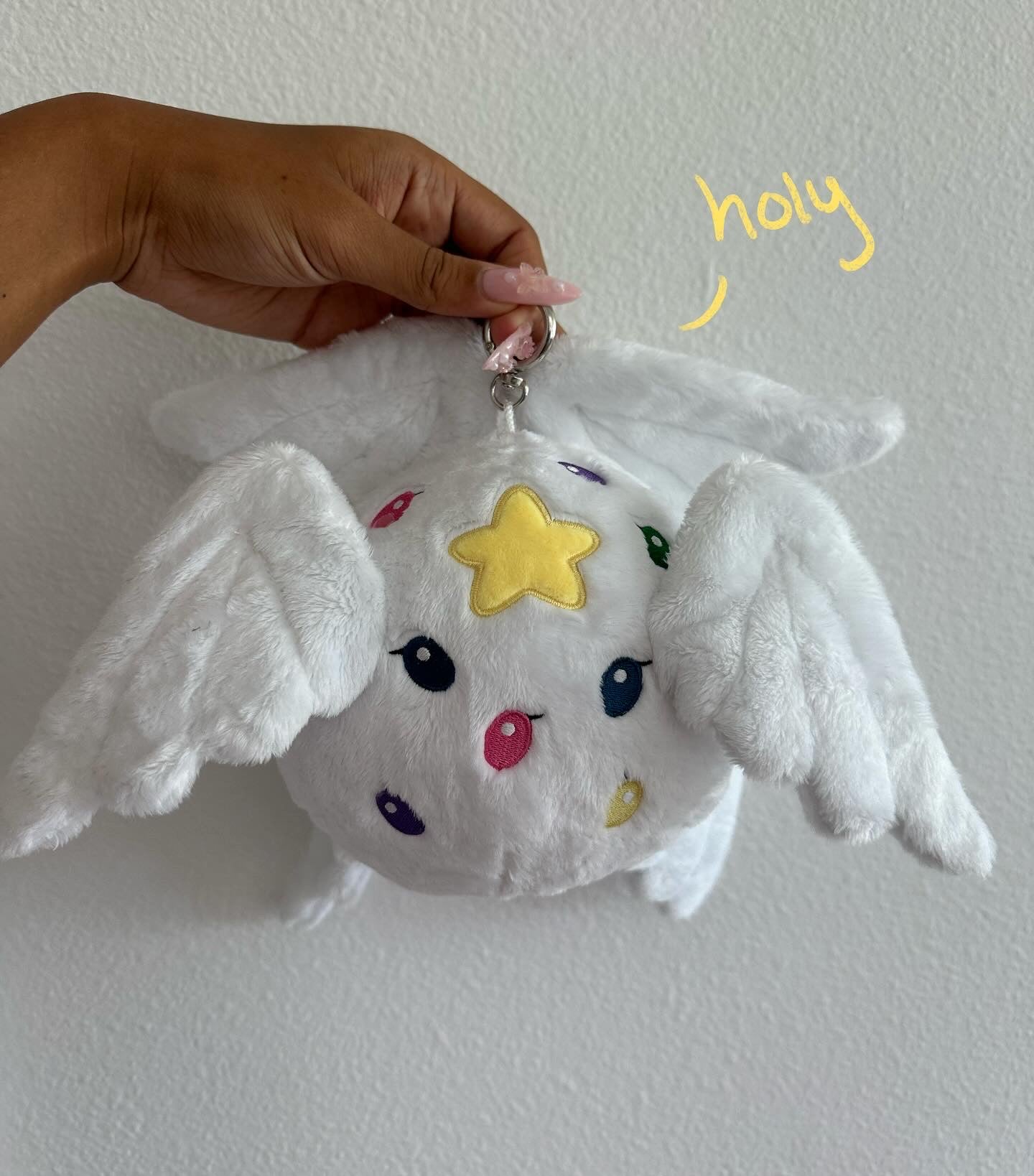 Straight from heaven, she will be your guardian angel keychain. This angel is called a seraphim and has lots of eyes and many wings! Shes a pretty big keychain so she can be a plush to!